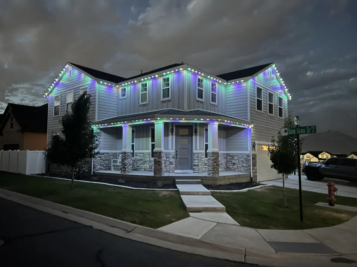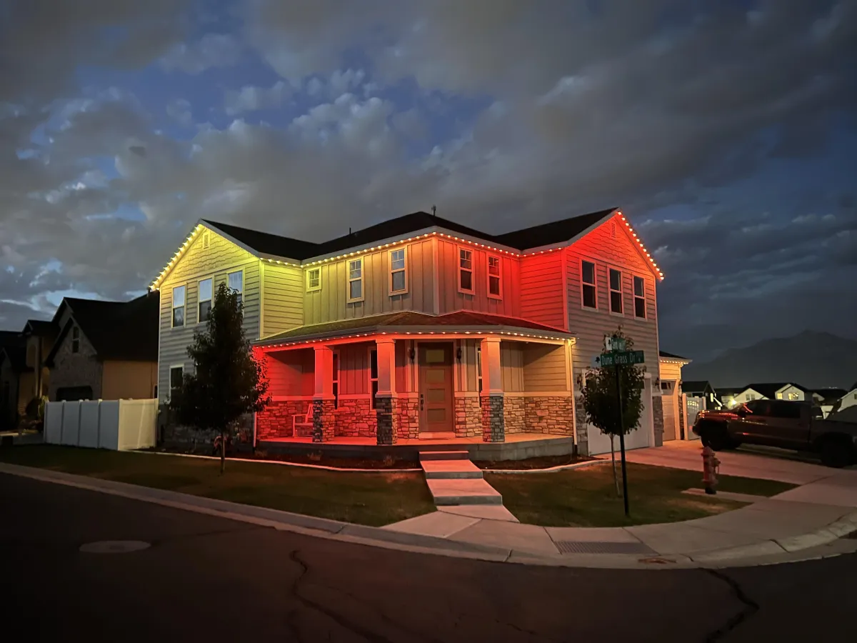 Our 24V RGB Lumi Lights seamlessly integrate into your home, installed within color-matched tracks that blend beautifully with your soffit and fascia. For most installations, the lights slide into a perfectly aligned channel on the bottom of the soffit, ensuring a sleek, discreet look during the day and vibrant, eye-catching illumination at night.